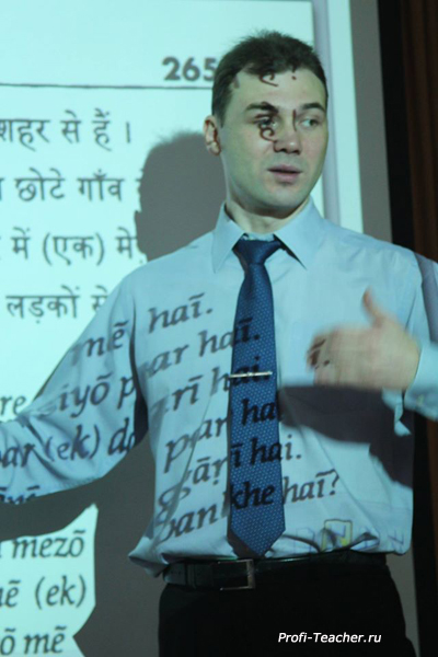 Я работал в трёх частных школах иностранных языков. В основном я провожу курсы английского языка как более востребованного. Проводил курсы тамильского языка в Харькове для 27 студентов и курсы хинди в Харькове для 30 студентов и в Москве для 25 студентов.